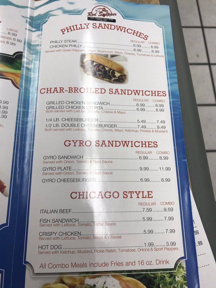 - Don't miss their Chicken Philly and Philly Steak Sandwiches, both served with fries for only $15.99.